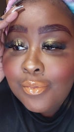 A warm caramel cocoa shade with just a hint of gold shimmer throughout. Very buttery and pairs beautifully with a brown lip liner!